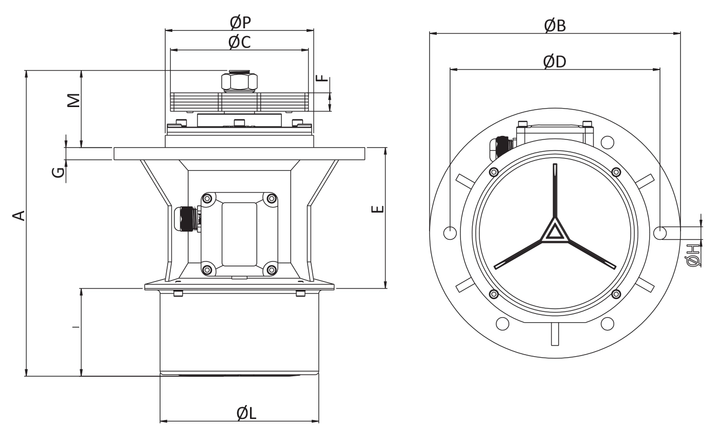 Model / Type | Gövde / Size | A | ØB | ØC | ØD | ØH | N | E | F | G | QI | ØK | L | M | ØP | KABLO RAKORU / CABLE GLAND |