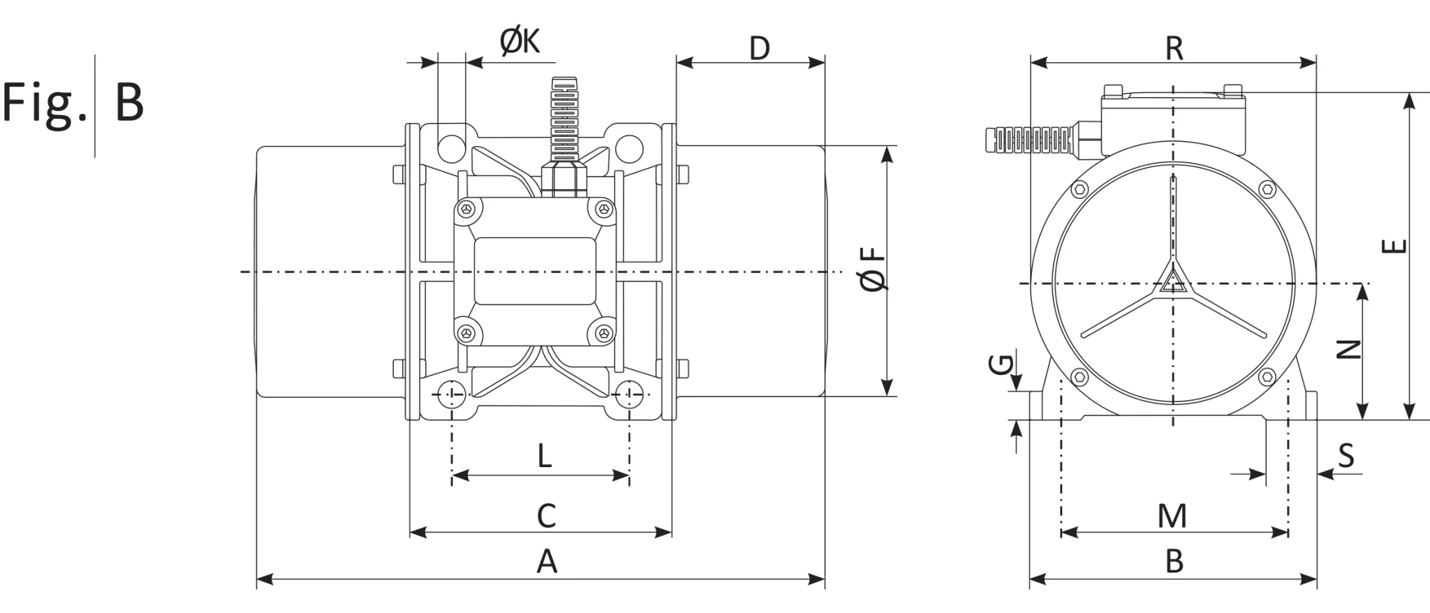 Model / Type | Gövde / Size | Fig | A | B | C | D | E | ØF | R | L | M | ØK | K¹ | G | S | N | |
