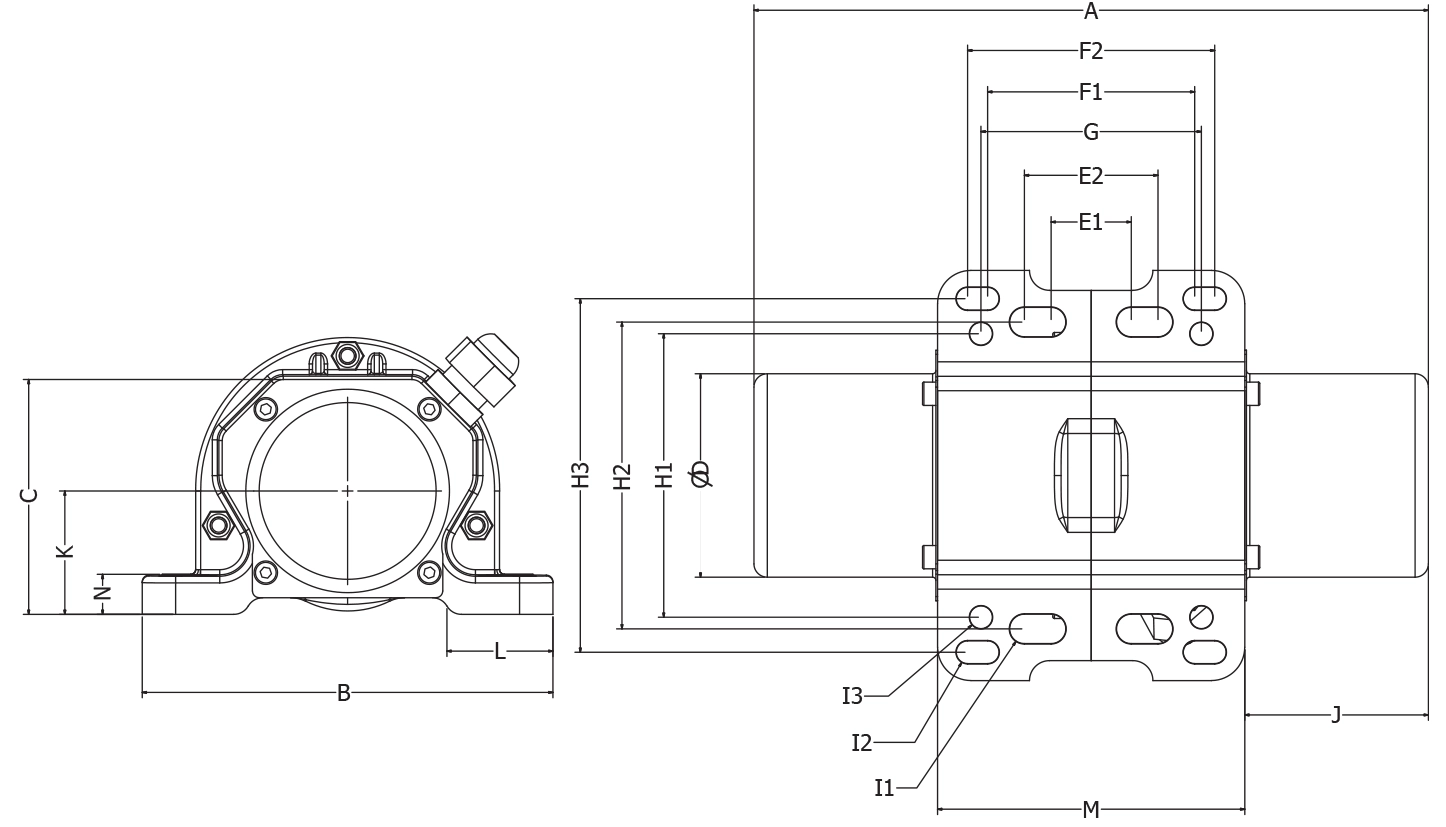 Model / Type | A | B | C | ØD | E1-E2 | F1-F2 | G | H | H2 | H3 | I1 | I2 | I3 | J | K | L | M | N |